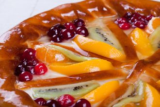 Пирог "Ассорти" (1000 гр) 442.20 руб. В корзину Пирог из сдобно-дрожжевого теста с сметанно-сливочным кремом и кусочками свежих фруктов, покрыт желейной глазурью. Пирог из сдобно-дрожжевого теста с сметанно-сливочным кремом и кусочками свежих фруктов, покрыт желейной глазурью.
