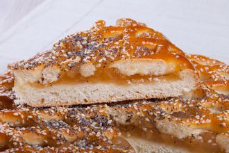 Пирог с абрикосом (920 гр) 328.90 руб. В корзину Пирог из сдобно-дрожжевого теста с абрикосовой начинкой, украшен кунжутом. Пирог из сдобно-дрожжевого теста с абрикосовой начинкой, украшен кунжутом.