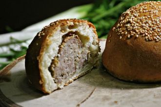 Котлета в тесте ( 110 гр) 58 руб. В корзину Пирожок из сдобно-дрожжевого теста с ароматной мясной начинкой (говядина) и репчатым луком, украшен кунжутом. Пирожок из сдобно-дрожжевого теста с ароматной мясной начинкой (говядина) и репчатым луком, украшен кунжутом.