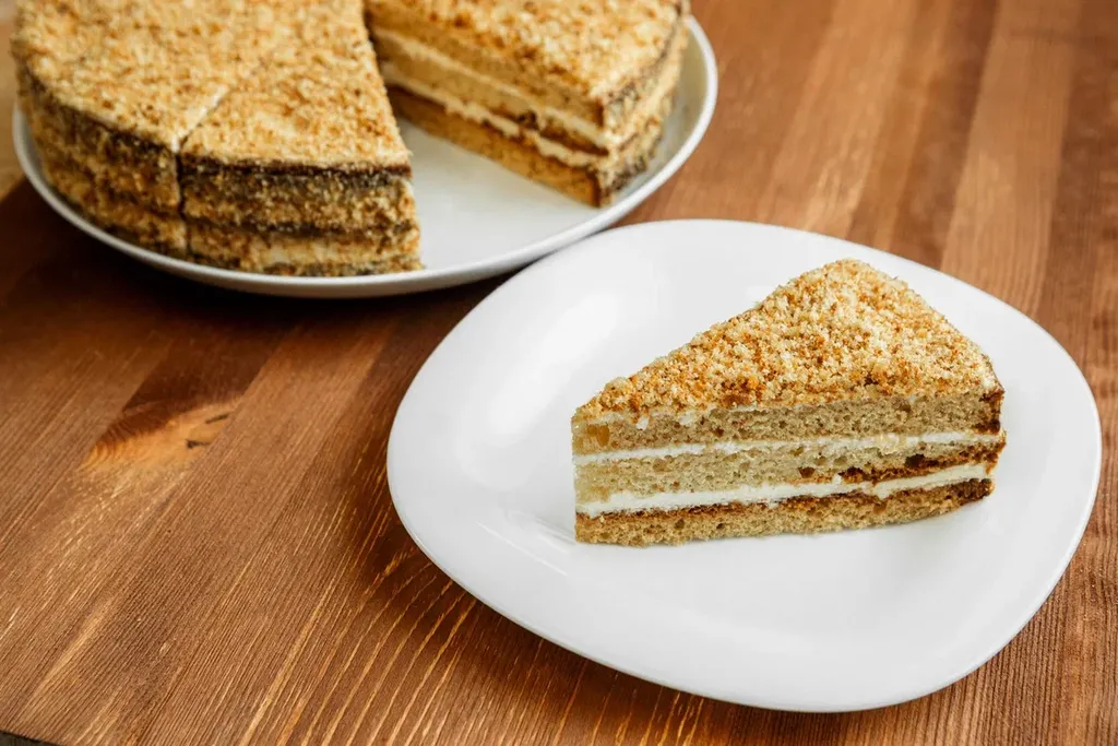 Торт "Медовик" 1000 гр 512.40 руб. В корзину Бисквитный торт с добавлением мёда, пропитан сахарным сиропом, прослоен заварным кремом, украшен декором из медовой крошки. Бисквитный торт с добавлением мёда, пропитан сахарным сиропом, прослоен заварным кремом, украшен декором из медовой крошки.