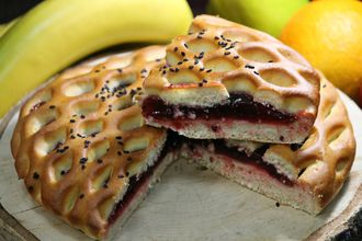 Пирог с черникой (920 гр) 341 руб. В корзину Пирог из сдобно-дрожжевого теста с черничной начинкой, украшен кунжутом. Пирог из сдобно-дрожжевого теста с черничной начинкой, украшен кунжутом.