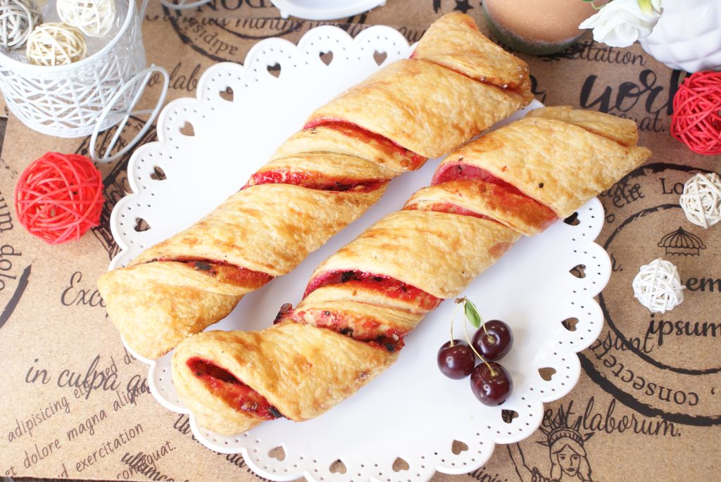Косичка с Вишней, шоколадом и гр орехом (110 гр) 50.60 руб. В корзину Косичка из слоено-дрожжевого теста с вишневой начинкой, шоколадом и молотым грецким орехом. Косичка из слоено-дрожжевого теста с вишневой начинкой, шоколадом и молотым грецким орехом.