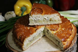 Мини пирог с Картофелем и грибами (500гр) 110 руб. В корзину Мини пирог из сдобно-дрожжевого теста с молодым картофелем, репчатым луком и шампиньонами, украшен кунжутом. Мини пирог из сдобно-дрожжевого теста с молодым картофелем, репчатым луком и шампиньонами, украшен кунжутом.