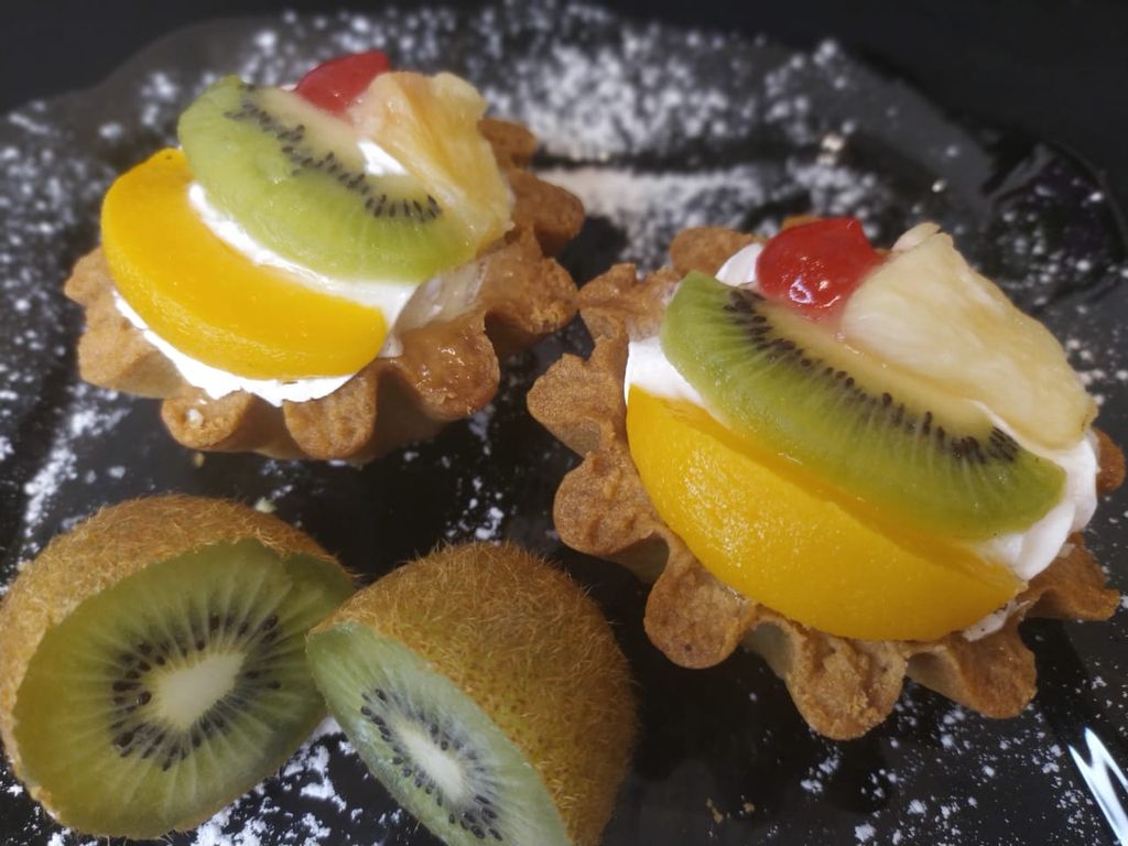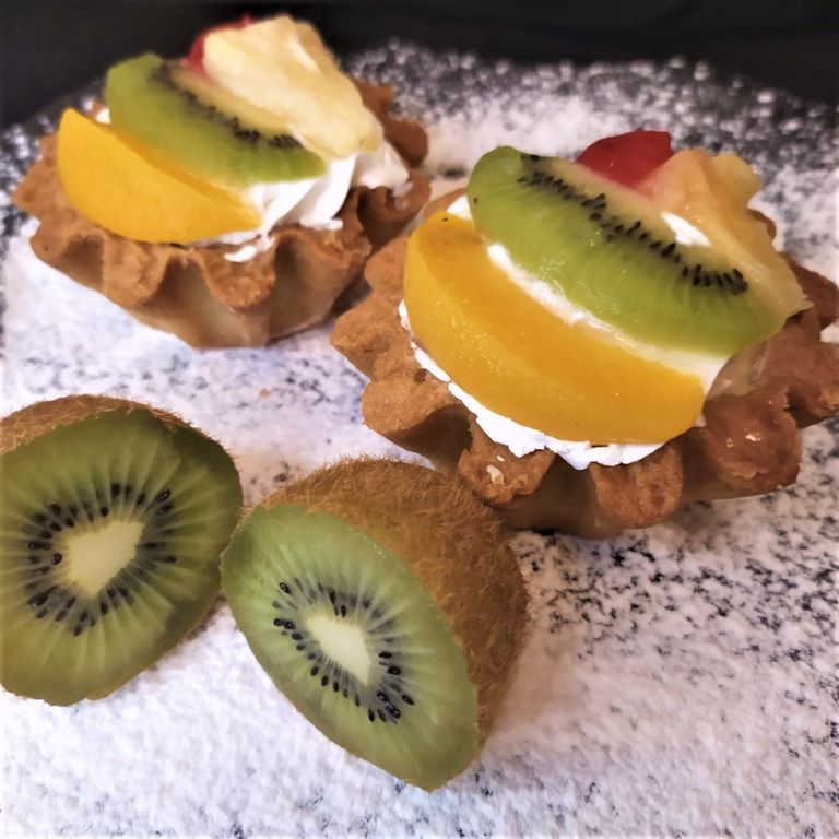 ПИРОЖНОЕ КОРЗИНОЧКА ФРУКТОВАЯ СО СЛИВКАМИ 90 ГР (УПАКОВКА 12 ШТУК) 768.60 руб. Пирожное корзиночка фруктовая из песочного теста со сливками, наполнена вареньем из клубники, свежим киви, персиком, ананасом и декорирована малиновым вареньем. Пирожное корзиночка фруктовая из песочного теста со сливками, наполнена вареньем из клубники, свежим киви, персиком, ананасом и декорирована малиновым вареньем.