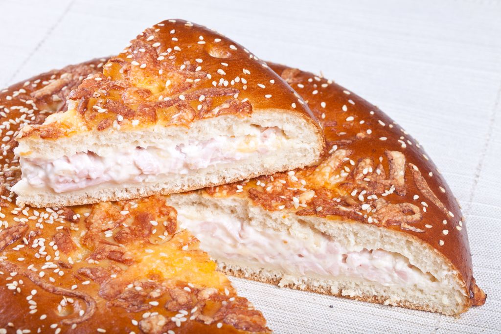 Пирог с Ветчиной и сыром (1000 гр) (модификация 1) 220 руб. В корзину Пирог из сдобно-дрожжевого теста с ароматной начинкой ветчины и сыра в нежном сливочном соусе, украшен кунжутом. Пирог из сдобно-дрожжевого теста с ароматной начинкой ветчины и сыра в нежном сливочном соусе, украшен кунжутом.